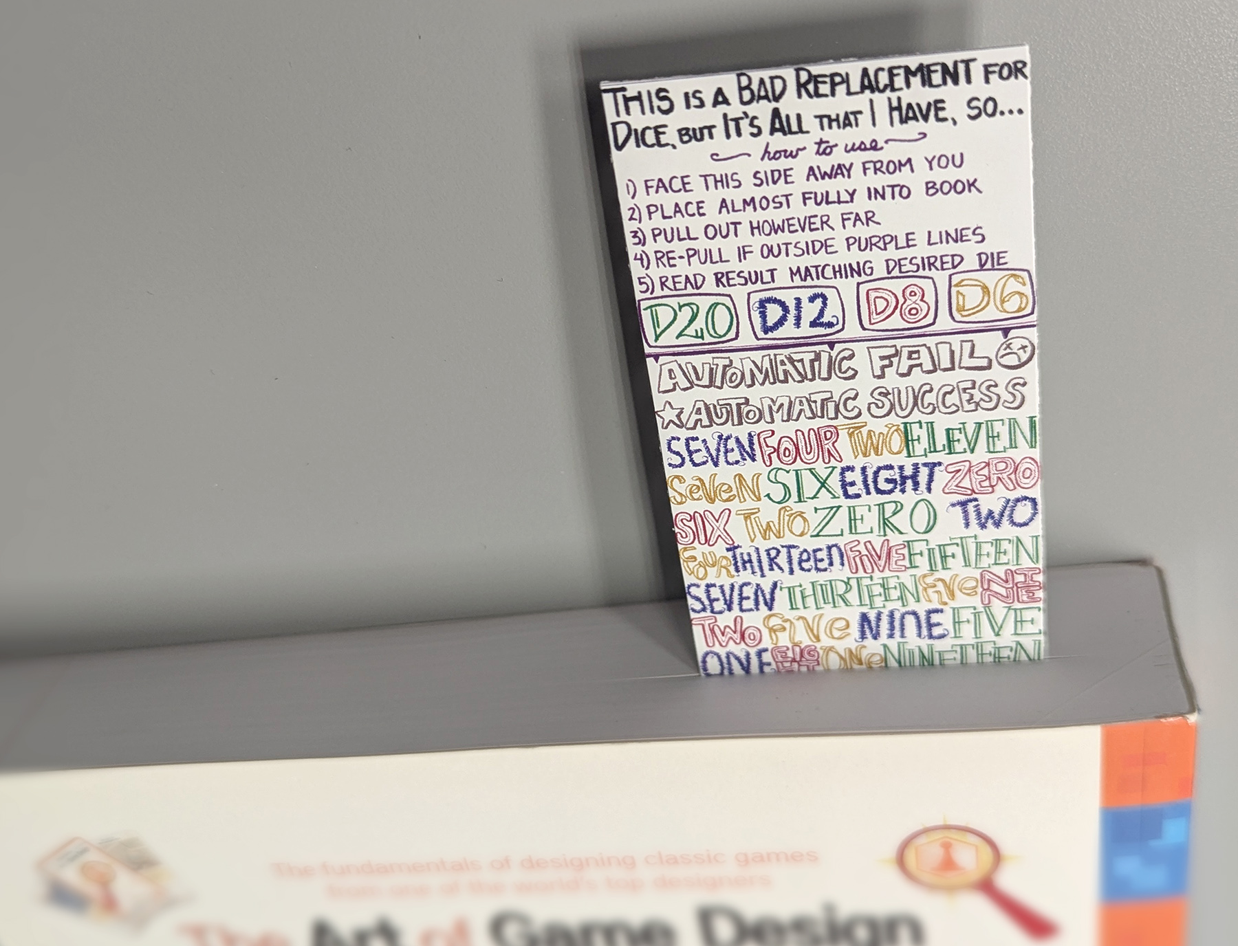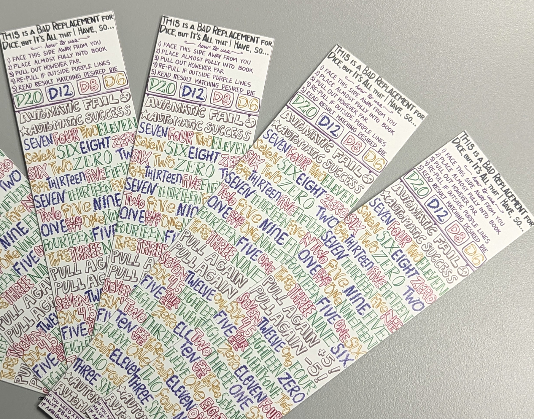 You know the story. You find yourself suddenly invited to play an RPG, but you've left all your dice at home. Thankfully, you remember you printed out that number-y bookmark as a joke, and it's in the very book you have with you!